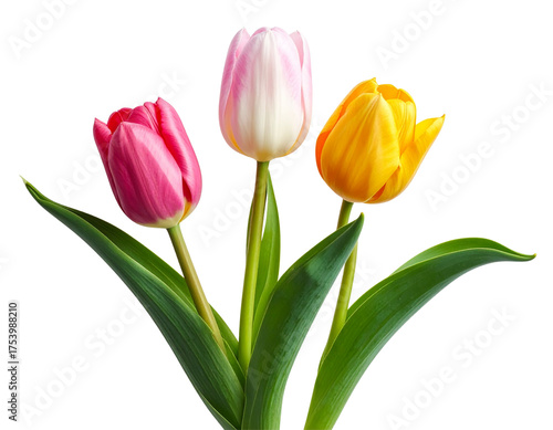 A vibrant bouquet of fresh pink tulips blossoms, isolated on a clean white background, signaling the beauty of spring