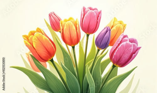 A vibrant bouquet of tulips in various colors, perfect for seasonal promotions, floral designs, or nature themed projects.