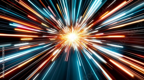 A vibrant burst of colorful light streaks radiating outward from a central point.