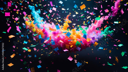 A vibrant burst of colorful powder and confetti against a dark background, symbolizing celebration, energy, and artistic expression. Perfect for event promotions and creative designs