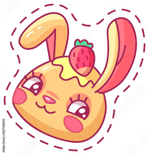 A vibrant cartoon bunny character features an adorable face and strawberry topping set against a cheerful colorful backdrop ideal for kids themes.