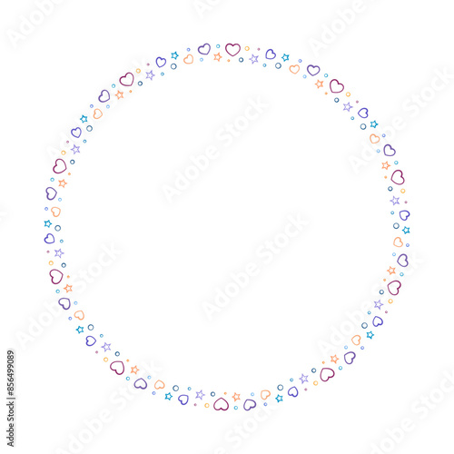 A vibrant circle frame made up of hearts and stars against a white background, ideal for creative designs.