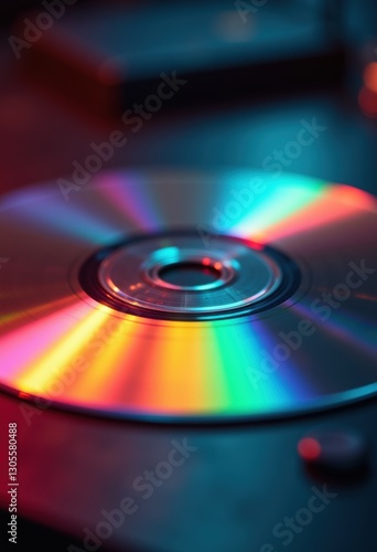 A vibrant close-up of a cd reflecting colorful light, perfect for technology, music, or digital media themes in marketing and branding.