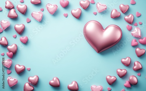 A vibrant close-up of a heart encircled by numerous glittering hearts, perfect for celebrating love and affection on Valentine's Day.