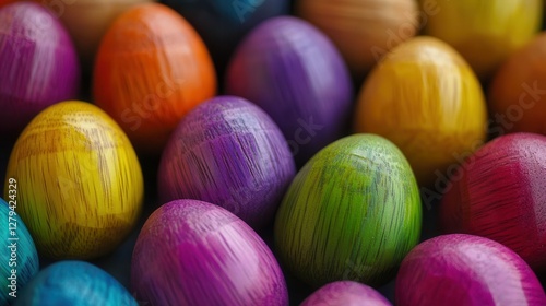 A vibrant close-up showcasing an assortment of beautifully painted eggs, highlighting intricate designs and a palette of vivid colors.