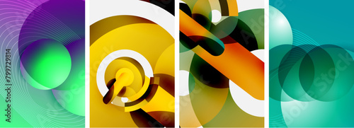 A vibrant collage featuring yellow, rectangular shapes, abstract art inspired by liquid patterns, circles, and bird imagery. A visual arts masterpiece combining painting and unique fonts