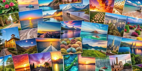 A vibrant collage of overlapping images and textures, artistic, mixed media, colorful, abstract, paper, creativity