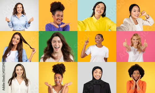 A vibrant collage showcases diverse women smiling and expressing joy. Each person brings unique backgrounds, celebrating inclusion and connection