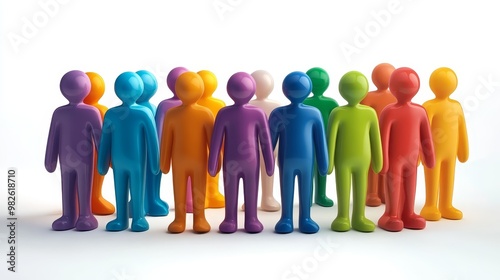 A vibrant collection of colorful humanoid figures representing diversity and unity in a modern abstract setting.