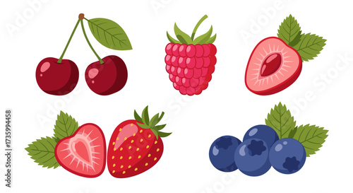 A vibrant collection of fresh berries including cherries raspberries strawberries and blueberries.
