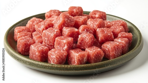 A vibrant collection of neatly cubed beef sits invitingly, showcasing its rich color and texture