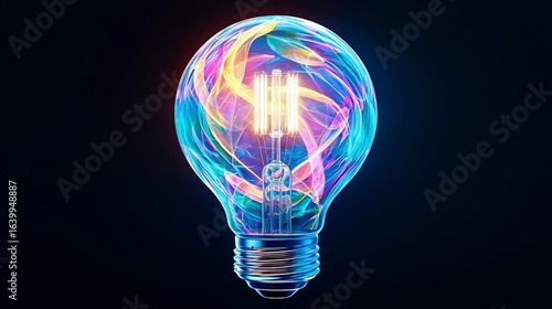 A vibrant, colorful light bulb illuminated with swirling patterns representing creativity and innovation.