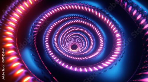 A vibrant, colorful spiral tunnel featuring neon pink and blue lights creating a mesmerizing illusion.