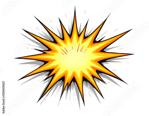 A vibrant comic-style explosion with sharp black outlines and a glowing yellow-orange center. Dynamic energy bursts outward, creating a striking impact effect.