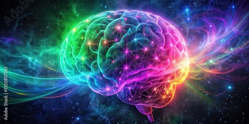A vibrant cosmic brain, a swirling nebula of thought and connection, radiating energy and intellectual brilliance, illuminated by a constellation of ideas.