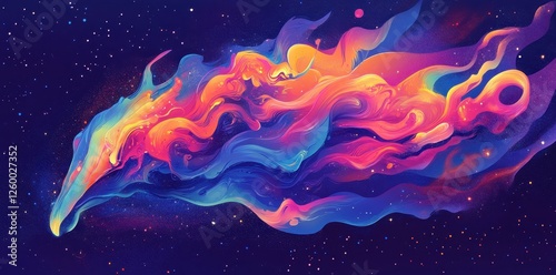 A vibrant cosmic entity swims through a starry deep sea
