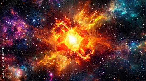 A vibrant cosmic explosion depicting the birth of a star in a colorful universe.
