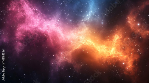 A vibrant cosmic scene depicting colorful nebulae and stars in deep space.