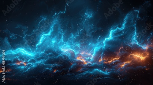 A vibrant cosmic scene depicting electrifying clouds and energy in deep space.