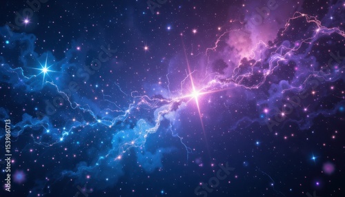 A vibrant cosmic scene showcasing nebulas, stars, and celestial light formations.