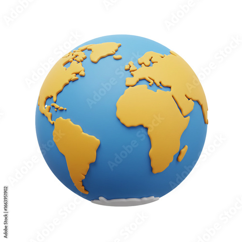 A vibrant depiction of our planet, showcasing continents in a warm hue against a cool blue backdrop, symbolizing global unity and environmental awareness, ideal for educational content.