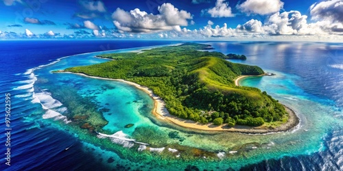 A vibrant, detailed map of Christmas Island, Australia, showcases its rugged coastline, coral reefs, and lush forests, highlighting its remote tropical paradise charm.