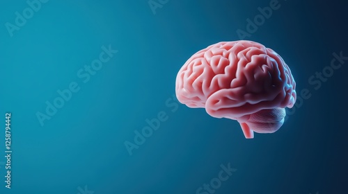 A vibrant, detailed representation of a human brain is showcased against a gradient blue background. The brain's intricate structure is highlighted, capturing its complexity and elegance