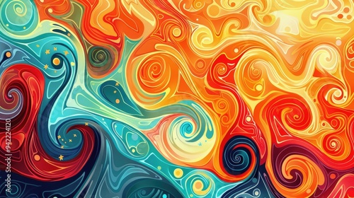 A vibrant digital artwork featuring swirling patterns and bright colors