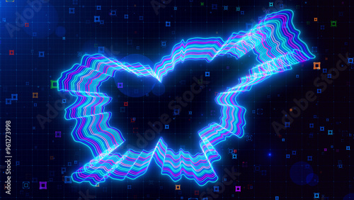 A vibrant digital artwork of Slovenia map outlined with neon lines, set against a futuristic grid background with colorful abstract HUD squares.