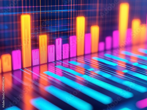 A vibrant digital data visualization featuring colorful bar graphs and charts, emphasizing trends and analytics in a modern design.