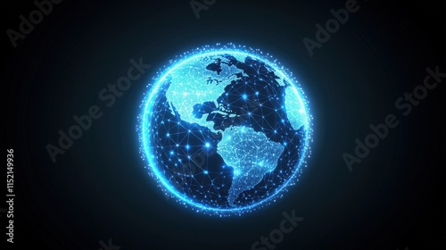 A vibrant digital representation of Earth, showcasing interconnected networks glowing in blue against a dark background.