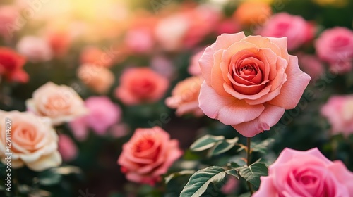 A vibrant display of blooming roses in assorted colors, capturing the essence of beauty and nature in a serene garden setting.