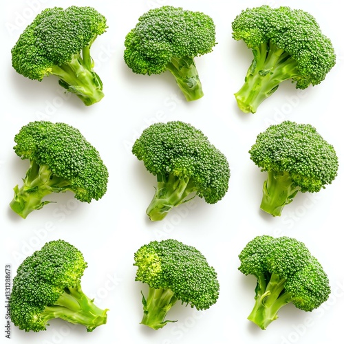 A vibrant display of fresh broccoli arranged in a clean, minimalist style. Perfect for health, nutrition, and culinary related projects.
