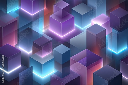 A vibrant display of interlocking cubes, illuminated by glowing neon lines, showcasing a dynamic and modern design aesthetic.