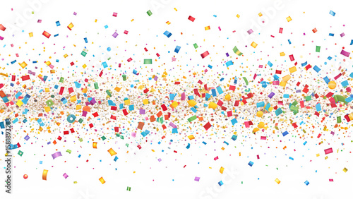 A vibrant explosion of colorful confetti falling against a clean white background, perfect for celebrations