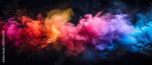A vibrant explosion of colorful smoke in shades of red, orange, pink, purple, and blue, creating dynamic and energetic atmosphere.