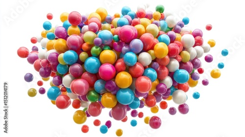 A vibrant explosion of colorful spheres, a delightful burst of rainbow hues against a stark white backdrop. A captivating image showcasing the joy and energy of diverse colors.