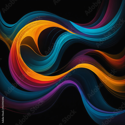 A vibrant, flowing abstract design featuring colorful waves against a dark background, evoking energy and movement.