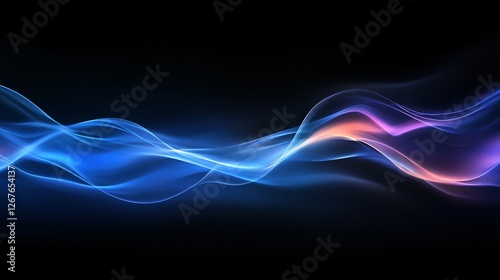 A vibrant, flowing abstract design of blue and purple waves against a dark background, suggesting movement and energy.