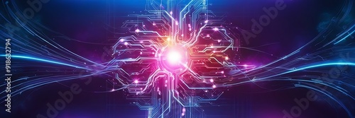 A vibrant, futuristic abstract background with interconnected nodes and flowing data streams, set against a dark backdrop to highlight a sense of advanced technology,