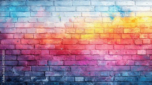 A vibrant graffiti wall with colorful splashes of paint on a brick surface.