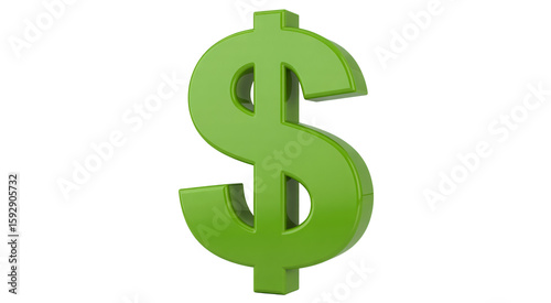 A vibrant green dollar sign stands tall, isolated on transparent background, representing finance and the economy
