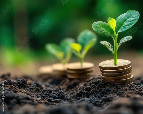 A vibrant green seedling sprouts from a stack of coins, symbolizing growth and sustainability in the financial world.