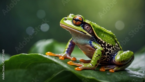 A vibrant green tree frog takes a leap of faith onto a lush leaf, marking the start of a new year on a sunny february day in the wild