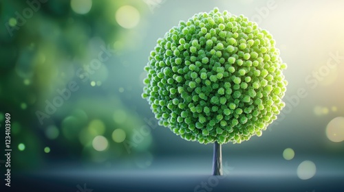 A vibrant green tree with a full canopy illuminated by soft light, symbolizing nature's beauty and growth.