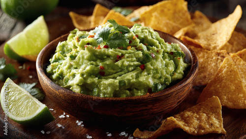 a vibrant guacamole dip nestled among crispy tortilla chips isolated on white or white background