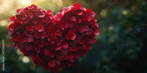A vibrant heart-shaped flower stands out prominently in a lush green field, symbolizing love and beauty on Valentine's Day.