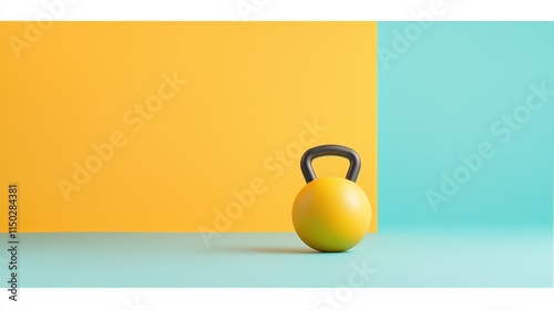 A vibrant kettlebell on a colorful background, combining yellow and teal, perfect for fitness-themed imagery.