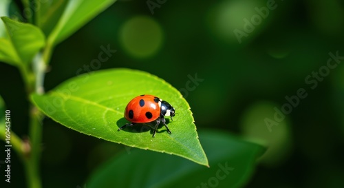 A vibrant ladybug rests on a bright green leaf, basking in the sunlight.