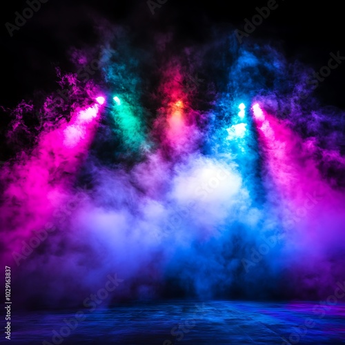 A vibrant light show in a dark atmosphere at night with colorful smoke effects, Generative Ai